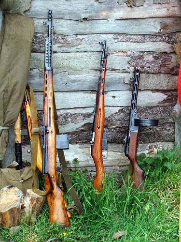 The PPSh 41 sub-machine gun, 7.62mm pistol round, wooden stock and 71 round drum magazine.